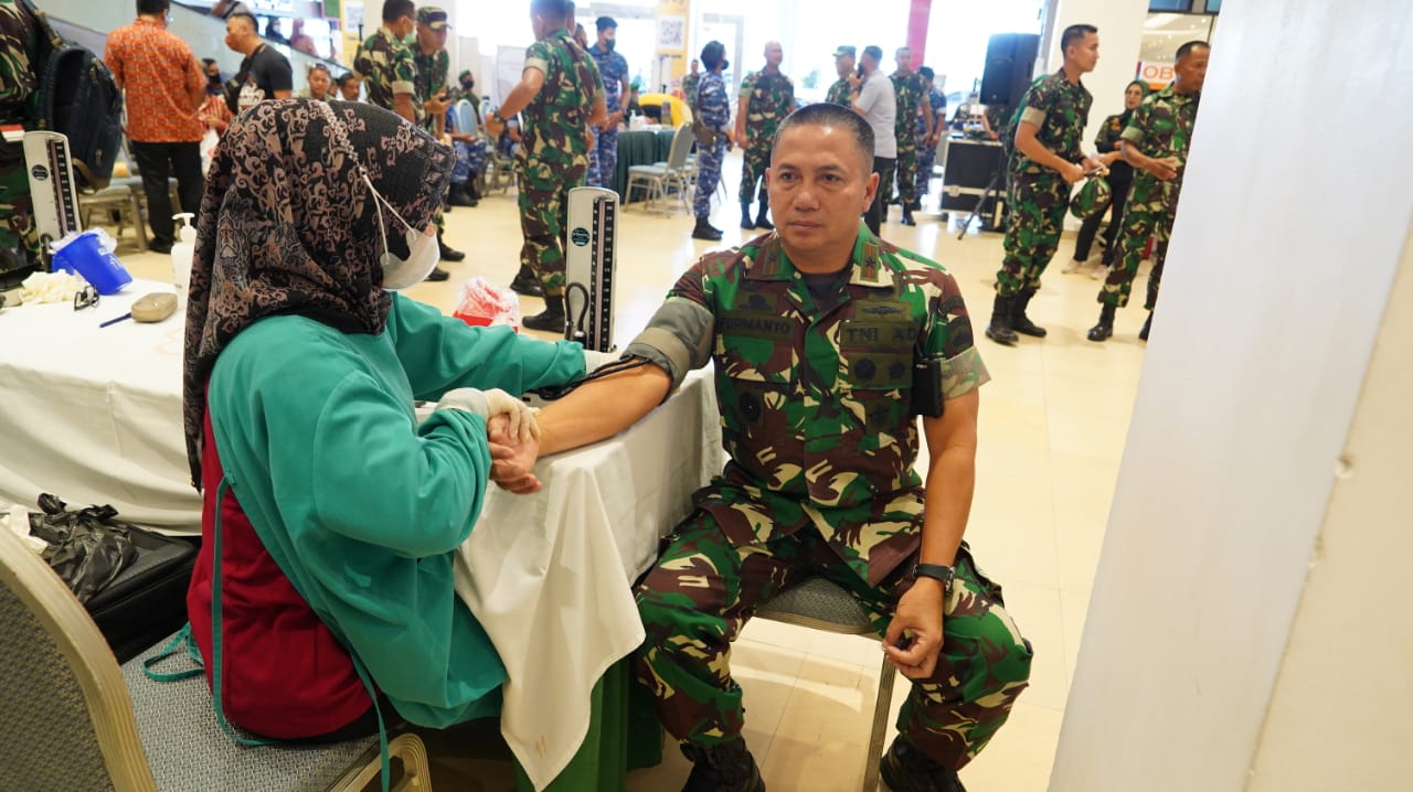Padang fhn com Dalam rangka menyambut HUT TNI ke-77 Tahun 2022, TNI menggelar kegiatan Bakti Sosial (Baksos) Donor Darah di Lantai I Transmart Padang , Selasa (27/9).