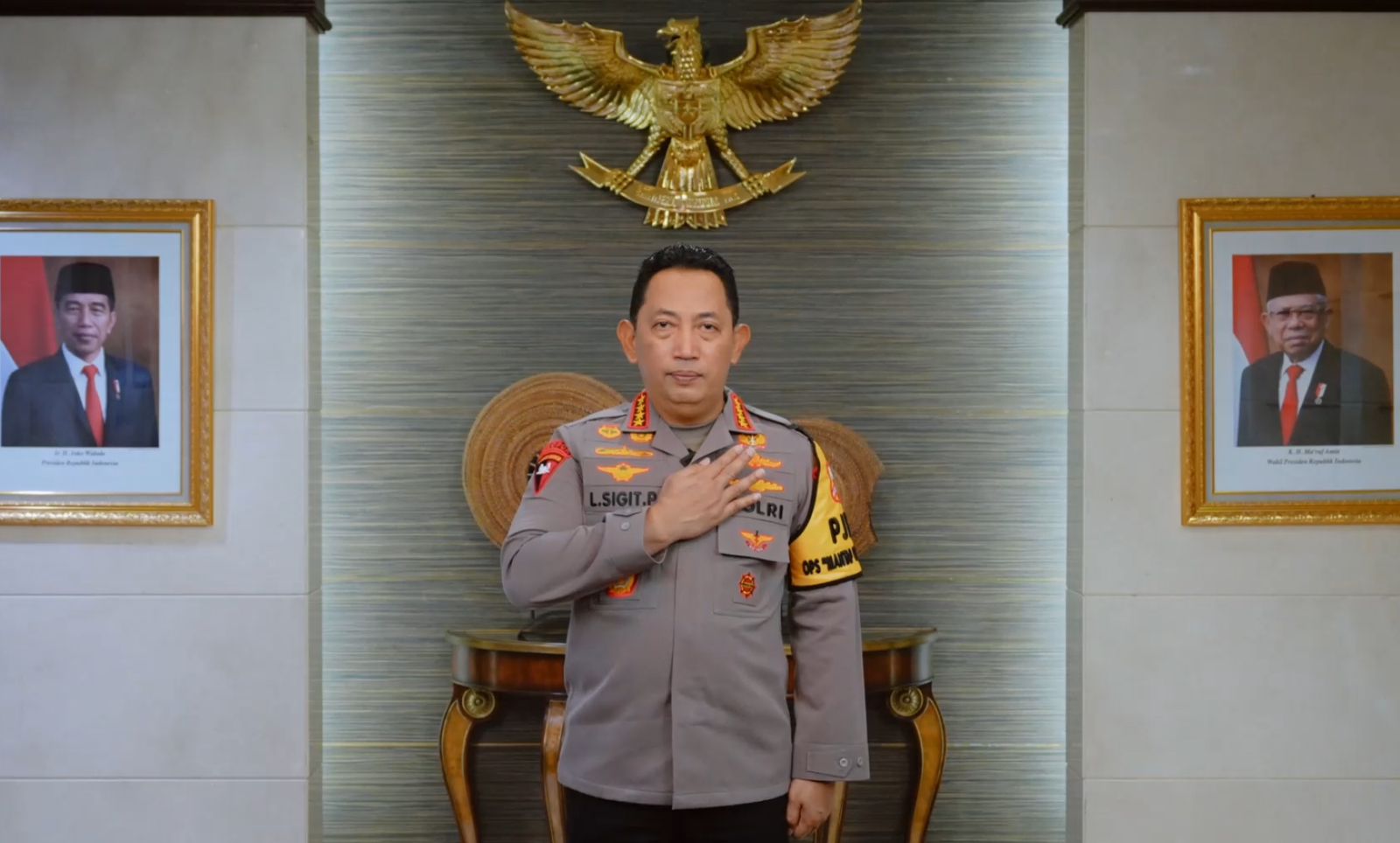 “Pada kesempatan yang berbahagia ini, saya Jenderal Polisi Drs. Listyo Sigit Prabowo M.Si, Kepala Kepolisian Republik Indonesia beserta seluruh keluarga besar Kepolisian Republik Indonesia mengucapkan selamat Natal 2023 dan Tahun Baru 2024,” ungkap Kapolri, Minggu (24/12/23).